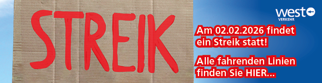 Die WestVerkehr GmbH (west) weist darauf hin, dass es am Montag, den 02.02.2026, zu einem Warnstreik im regionalen Busverkehr kommen wird. Der von der Dienstleistungsgewerkschaft ver.di angekündigte Warnstreik wird ganztägig zu Beeinträchtigungen und Ausfällen im Buslinienverkehr der west im Kreis Heinsberg sowie in den angrenzenden Städten und Gemeinden führen. Auch der MultiBus-Verkehr – insbesondere in den Bereichen Geilenkirchen, Gangelt, Selfkant und Waldfeucht sowie Hückelhoven, Heinsberg und Wassenberg – wird davon betroffen sein.