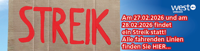 Die WestVerkehr GmbH (west) weist darauf hin, dass es am Freitag, den 27.02.2026 und am Samstag, den 28.02.2026, zu einem Warnstreik im regionalen Busverkehr kommen wird. Der von der Dienstleistungsgewerkschaft ver.di angekündigte Warnstreik wird ganztägig zu Beeinträchtigungen und Ausfällen im Buslinienverkehr der west im Kreis Heinsberg sowie in den angrenzenden Städten und Gemeinden führen.