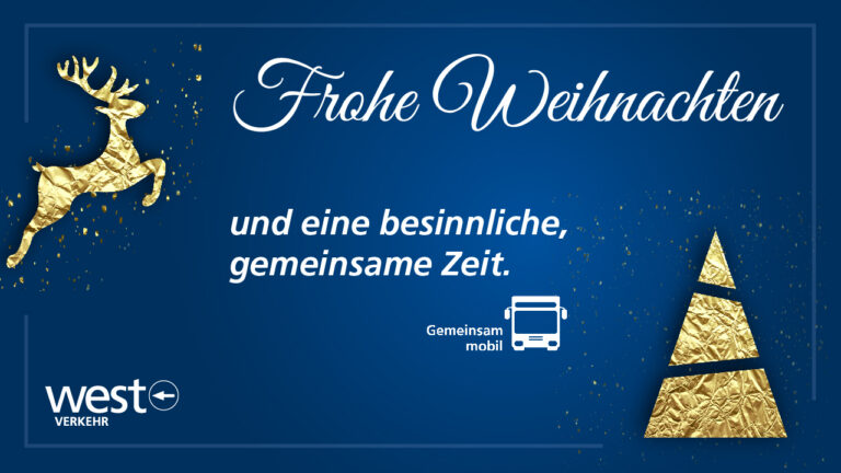 Die WestVerkehr GmbH wünscht allen Fahrgästen ein frohes und besinnliches Weihnachtsfest sowie einen guten Start in das neue Jahr 2026.