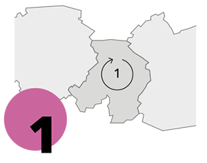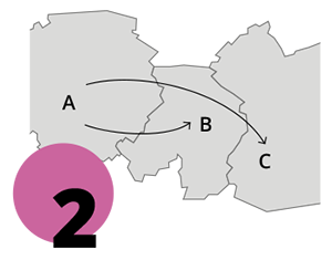 Preisstufe 2 gilt für Fahrten zwischen Deinem Startgebiet und einer benachbarten Stadt/Gemeinde sowie darüber hinaus in die übernächste Stadt/Gemeinde.
